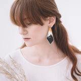 Fekete-okker, absztrakt mintás, nagy méretű, szögletes fülbevaló.